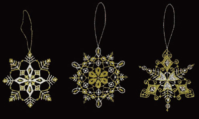 星、雪の結晶、ヒイラギ、ベル、サンタクロースなど、クリスマスのモチーフを華やかなレースで大人っぽく表現しました。 クリスマスツリーにオーナメントとして飾ったり、窓に貼り付けて飾ったり、クリスマスシーズンをシックに、そして華やかに演出します。
